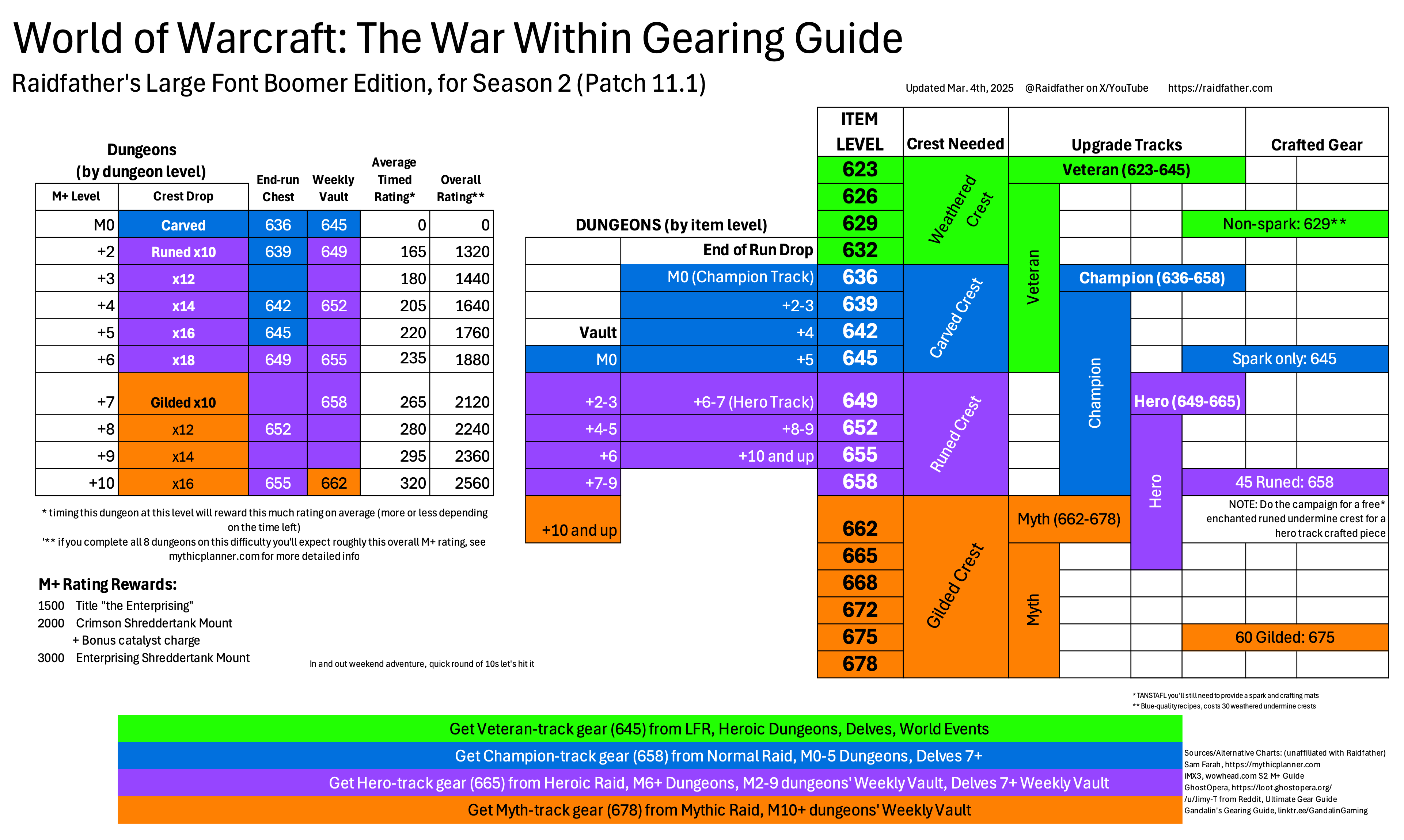 Access the source excel sheet here via Office 365 (free): Raidfather's Printer-Friendly 11.1 Gear Guide.xlsx
